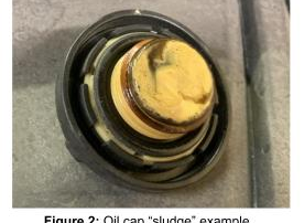 As you might expect when you come into a dealership with a problem that’s not outwardly obvious, they don’t really want to do much. They did what’s known as a block check, (AKA: cooling system pressure test) and it passed. That test involves removing the radiator cap and attaching a special hand-powered air pump that has a pressure gauge attached to it. You pump the pressure until it gets to a certain level and then see if the pressure holds. This test is good for finding large/obvious leaks, but can easily miss small ones like mine. I suspect that’s because my leak probably isn’t present when the engine is cold and only shows up when the engine is hot and all the parts have expanded. The dealership also noted that they took off the oil fill cap and didn’t see any evidence of a leak. That part surprised me because I believe they were looking for yellow sludge that sometimes shows up under the oil fill cap (see Figure 2).